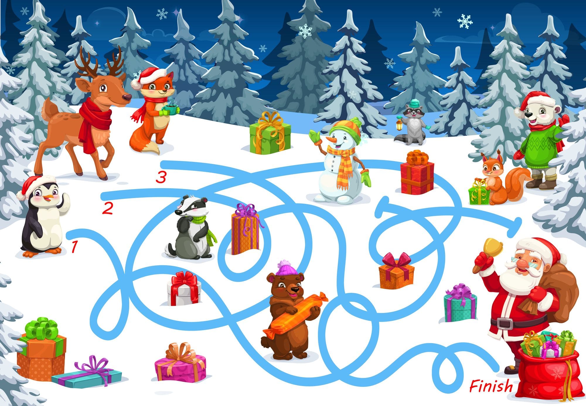 Los acertijos pueden incluir problemas de lógica, encontrar objetos ocultos y resolver acertijos como parte de un tema navideño.
